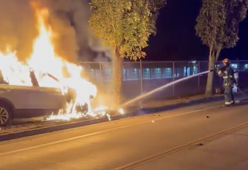 Eugene, OR – Eugene Springfield Fire crews responded to a motor vehicle accident at 18th Avenue and Monroe Street in Eugene that resulted in a vehicle catching fire.