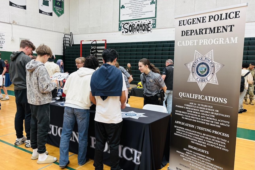 Eugene, OR – The Eugene Police Department participated in a recent career fair at Sheldon High School, where officers spoke with students about opportunities in law enforcement.