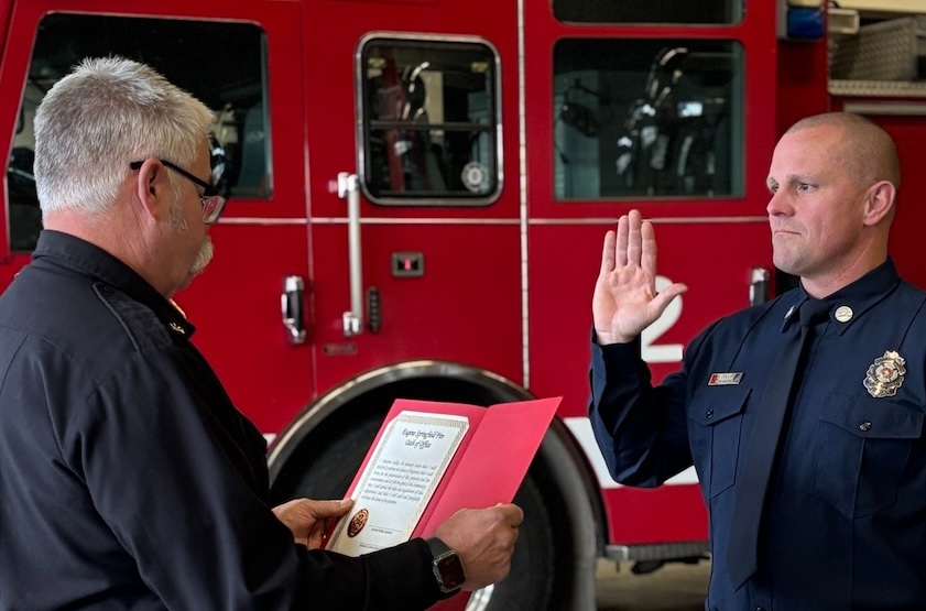 Eugene, OR – This afternoon, Engineer Jackson Cullop was officially sworn into his engineering role with the Eugene Springfield Fire Department.