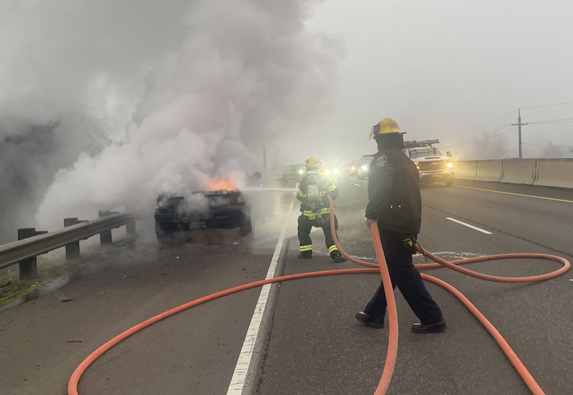 Eugene, OR – Last week, Eugene Springfield Fire Engine 6, responding from the Willakenzie Station to a medical call, came across a vehicle fire on westbound Beltline.