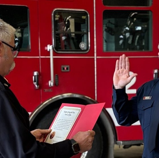 Eugene, OR – This afternoon, Engineer Jackson Cullop was officially sworn into his engineering role with the Eugene Springfield Fire...