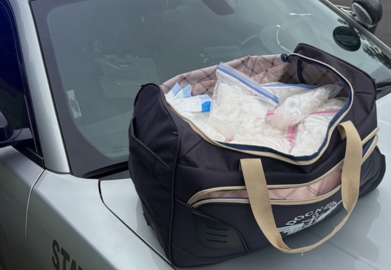 Just before 11 a.m., an Oregon State Police trooper pulled over a northbound passenger vehicle after observing indicators of potential criminal activity. During a consent search of the vehicle, officers discovered a duffel bag in the trunk containing 40 resealable plastic bags of methamphetamine, weighing a total of 40.5 pounds.