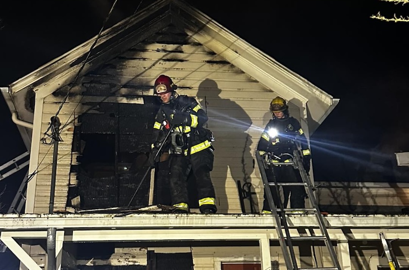 Eugene, OR – Eugene Springfield Fire responded early Sunday morning to a two-alarm house fire in Eugene’s University neighborhood, displacing the homeowner.
